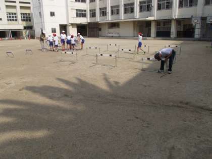 小さいハードルを使って、一生懸命練習していました。