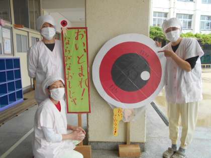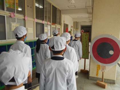 学級ごとに、きっちり並んで、給食を取りに行き、教室まで運び、丁寧に配膳しています。