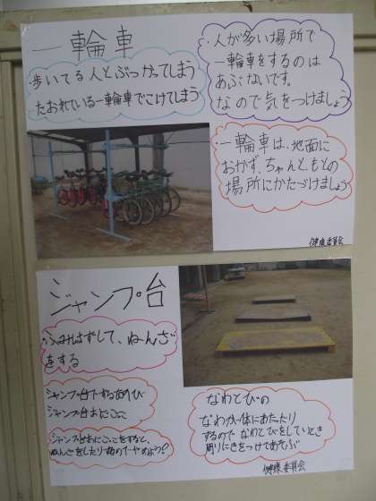 校内でのケガ発生場所の注意事項を委員会活動でまとめました。
