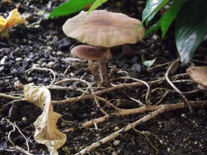 子どもたちの言う通り職員室前花壇に「きのこ」生えてました。へぇ…。