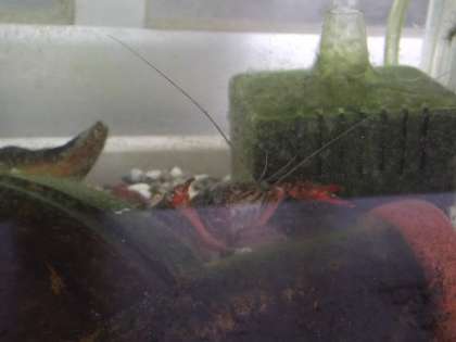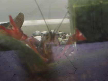 ザリガニさんの水槽に近づいたら、「ガォー」と威嚇されました。