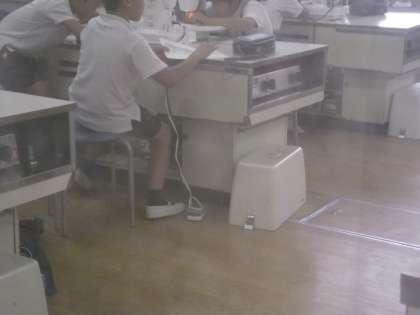 家庭科室の前を通りがかったら、「用意、はじめ」と聞こえたので、何をしてるのかしらんとのぞいたら、多分ミシンの糸通しのようでした。