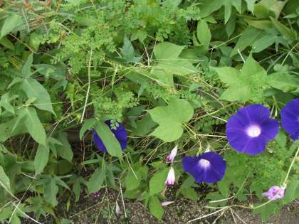 サツマイモの雑草は、子どもたちが抜いたのか整理されていました。元気なアサガオ・向日葵のほうは、雑草も元気でした。