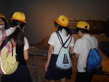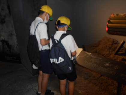 平和学習を深めるために、6年生が「ピースおおさか」へ出かけました。防空壕の中を実際に体験もしました。