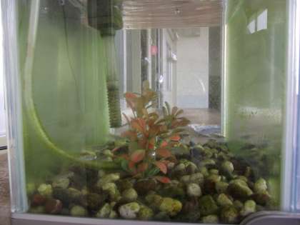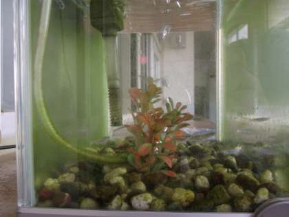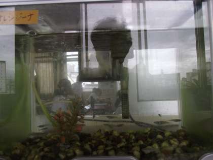 透明水槽のメダカさんは、今日も元気に過ごしておられました。