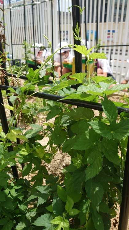 GAMO4-Brewery様、がもよんプロジェクト様から頂いた「ホップ」。今回は5年生が観察します。