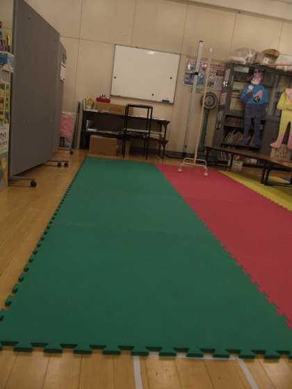 今日から、6年生から「視力検査」がスタートしました。これ位離れて検査します。