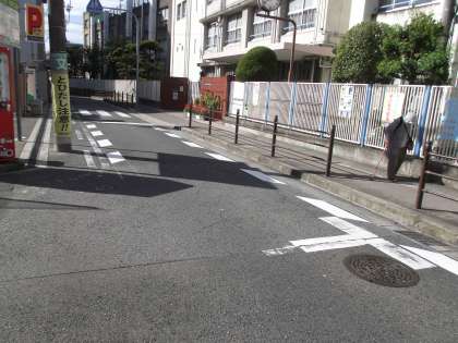 以前から各方面にお願いしていて、やっと城東警察や行政のお力で、学校前道路に、注意喚起を促す道路標示がされました。