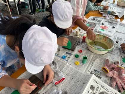 自然学習で体験したことをテーマにしたり、自分の好きなものを描いたり、自分の部屋の掛札にしたりと個性豊かな作品に仕上げていました。