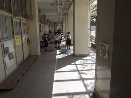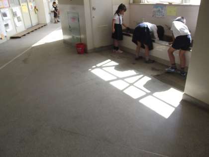 久しぶりに「そうじ」の様子を撮りました。男の子が「画鋲が落ちてました」と1つ持ってきてくれたので、掲示板に押し止めておきました。