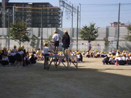 10月8日の児童集会は「人間ビンゴ」。集会委員が、1から31の数字をコールして、それが自分の誕生日なら座ります。集会委員が見本を示して、みんなで楽しみました。