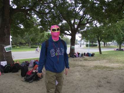 鶴見緑地について、児童会メンバーからの諸注意を聞いた後、縦割り(異年齢集団)班に分かれて、ポイントを回っていきました。途中マスクマンに会えばプラス10点のポイントです。