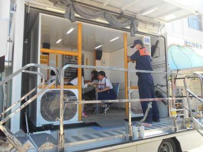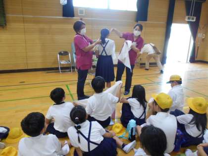 聖賢地域活動協議会とともに防災訓練を行いました。水消火器、三角巾体験など、今回は起震車が来ました。引き渡し訓練もスムーズに終わりました。