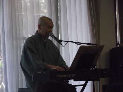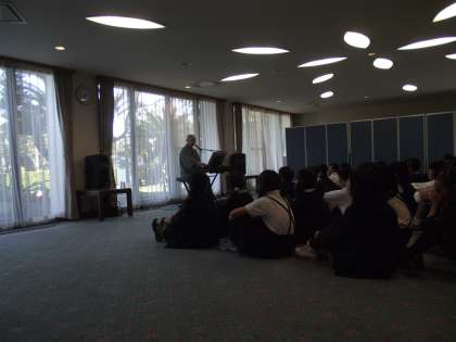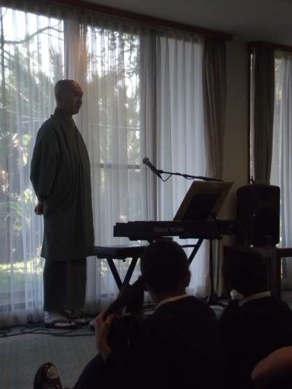 例年は初日の夜ですが、今回は2日目朝でした。ミニコンサートのようなものです。まわりが幸せになれば自分も幸せ。ドラえもんのように便利グッズは出せないけれど、父様母様、ご先祖様から頂いた自分の体が宝物。といった内容をきれいな歌声とともに伝えてくれました。