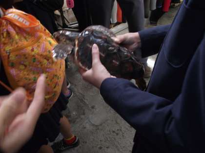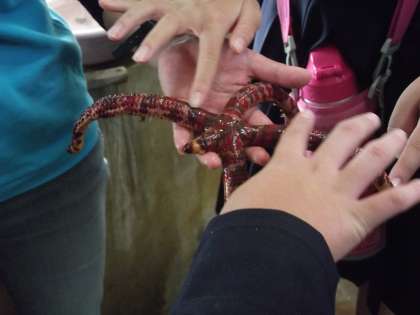 カメさんや、ヒトデ、ウニなど、いろいろ触ってみました。