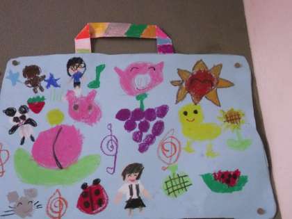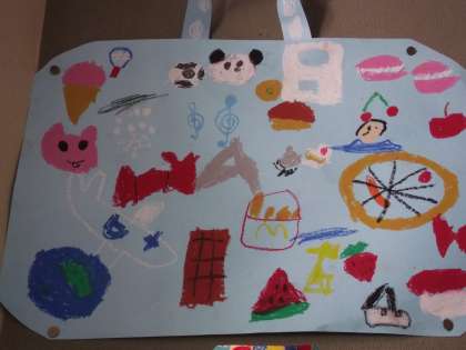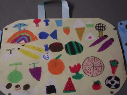 鞄の中身を描いたのか、入れたいものを描いたのか…。