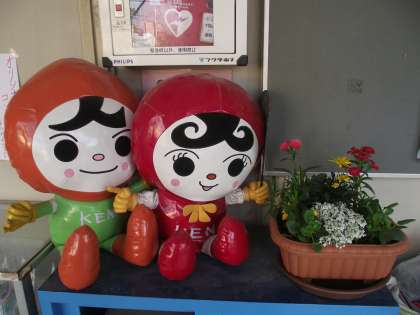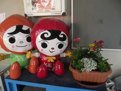 誰が置いてくれたか、「寄せ植え」の花。なんだかマモル君たち嬉しそうです。