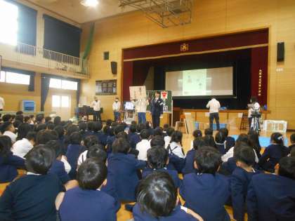 城東警察署と区役所の方による、交通安全の授業がありました。あんパトの紹介があったり、自転車の乗り方についての学習をしました。