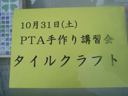 10月31日(土)、PTA手作り講習会で「タイルクラフト」が行われます。