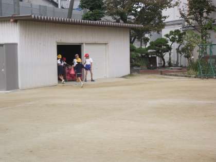 終わったら、朝礼台やら、コーンやら、ボールのお片付けです。集会委員さん、ご苦労様です。