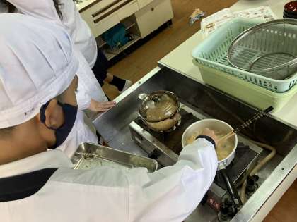 家庭科の調理実習で、お米を炊いたり、みそ汁を作ったりしました。
