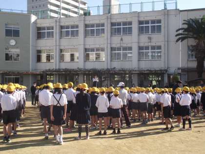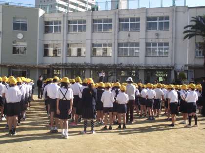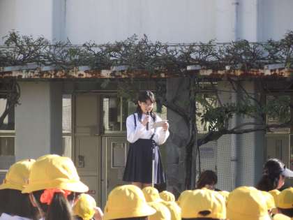 今日の児童朝会で、図書委員が「読書週間」の取り組みを報告しました。