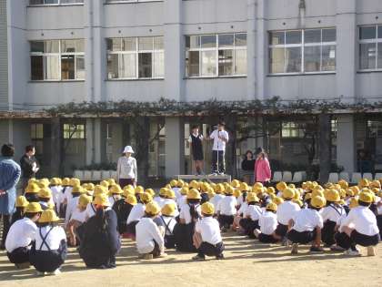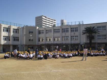 児童朝会時(学校に入ったら)、名札を付けてない人が注意されました。ベストにつけていて、暑いからと脱いだ時は、ブラウスにつけるようお話がありました。