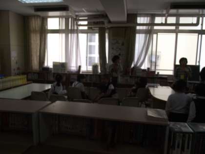 お昼休みは、図書ボランティアさんが、図書室で「説き聞かせ」をしてくださいました。