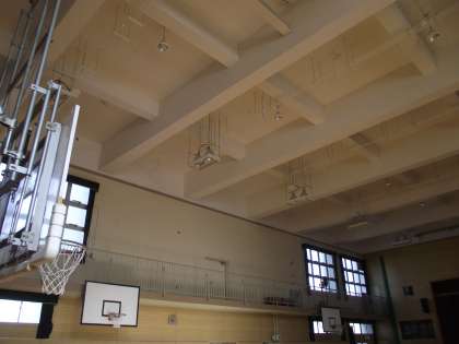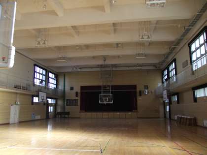 体育館の工事が終わって、今日から「体育館」が使えます。早速1時間目から体育をするクラスがありました。