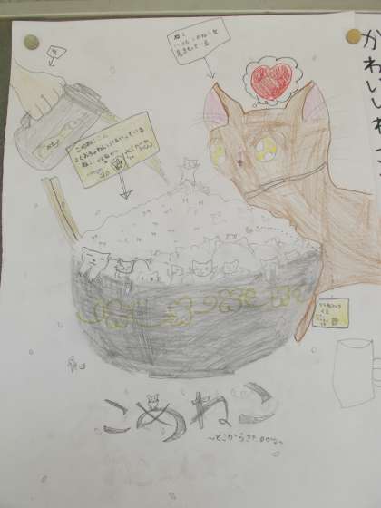 朝の「児童集会」時に表彰されたイラストを中心に、職員室前掲示板に張り出されました。