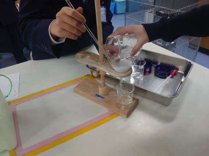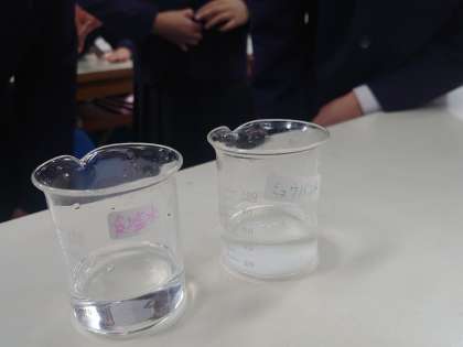 これら二つの方法で食塩、ミョウバンは共に取り出せるのか?実験前に水溶液のろ過を行います。ろ過はほとんどの児童がはじめての経験だったと思います。