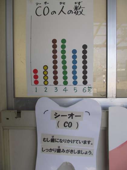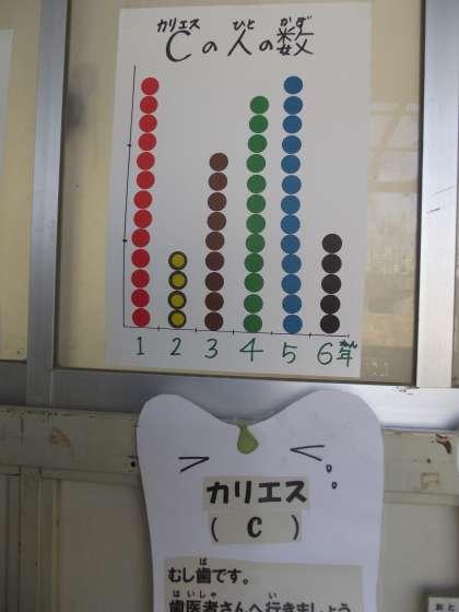 歯科検診が終了し、各学年の歯の状況が、保健室前に掲示されました。