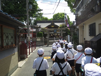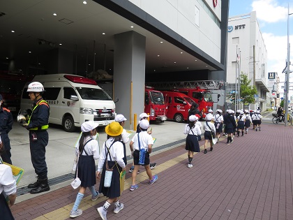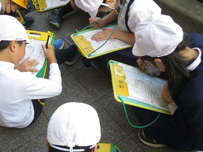 校区の地図と照らし合わせながら、神社や消防署、区役所など、校区内にある施設を見て回りました。
