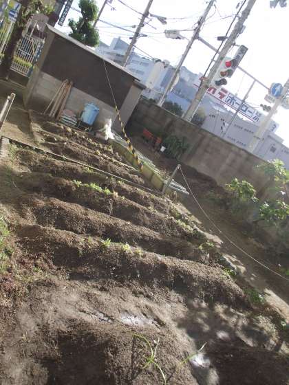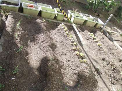 飼育栽培委員会が、何か植えたというのは分かるのですが…。気になったので担当の先生に聞いたら「ふふっ、知りたい?」と間を持たすので、『早よ、言えや』と心で思いつつ「はい、知りたいです」と言うと「ほうれん草」「水菜」「菊菜」「サニーレタス」と教えてくれました。うーん、鍋ができるな。