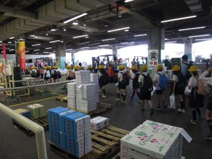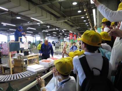 競り場では、符丁を教えていただき、模擬競りをしました。