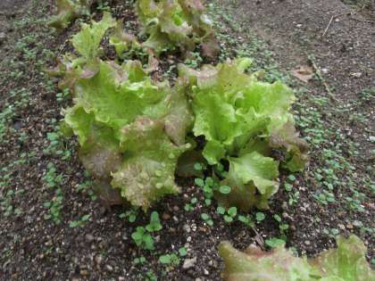 サニーレタスや、水菜、菊菜等は、まだまだ畑で大きくなってもらわないと…。