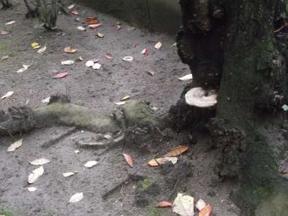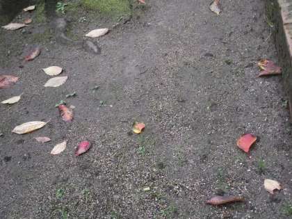時期的に、幼稚園や保育所、小学校低学年の子どもたちが「落ち葉」を拾い集める時期です。紅や黄色や緑の葉っぱを集めて「絵」にしたり、工作したりします。校内の木々も葉を散らしています。