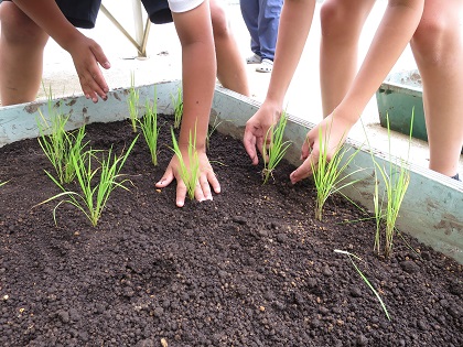 初めは土におそるおそる触っていましたが、慣れてくると、どんどん手際よく苗を植えていきました。