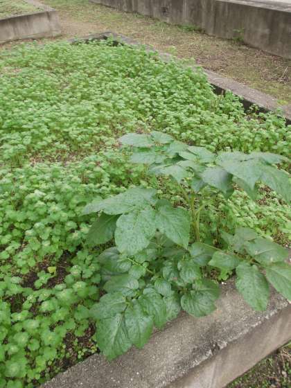 サツマイモさんがいらした所に、何やらググッと伸びてきた方がいらしたのと、拡大を続ける花は順調に勢力をのばしつつあります。