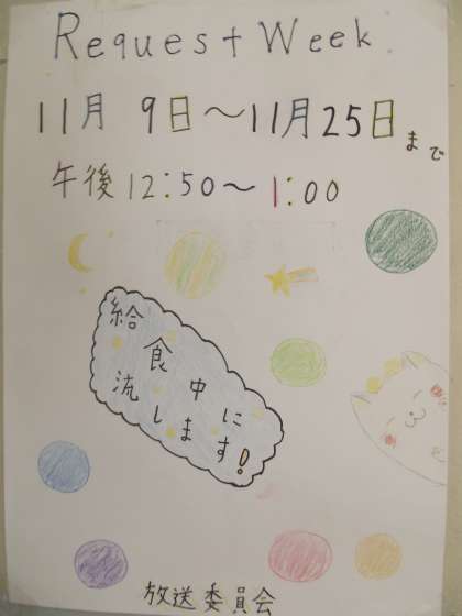 放送委員会の「リクエストポスター」は、けっこう校内のいたる所に貼ってあります。