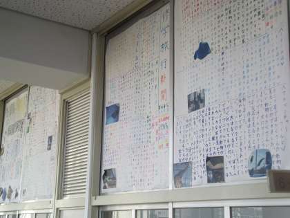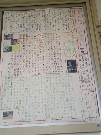 修学旅行のことを新聞にして、廊下というか教室外の窓上部に掲示されてました。