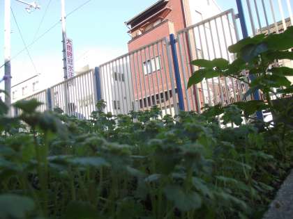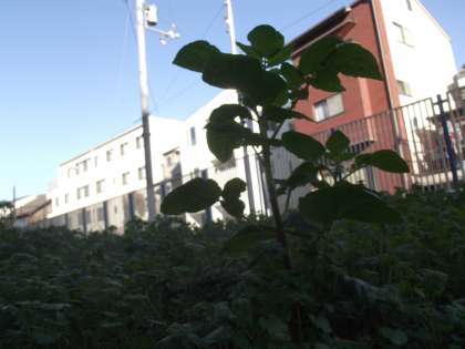 サツマイモが埋まってた所、緑がぐんぐん伸びてきました。