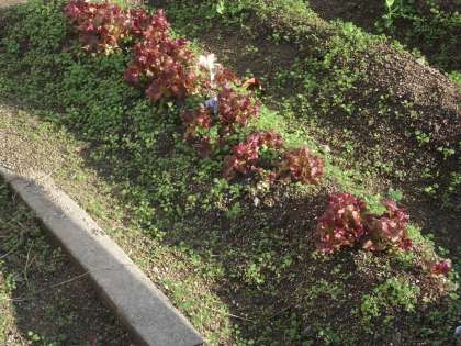 日陰にあるサニーレタスさんは、そんなに赤くなってませんが、陽が良く当たってっるサニーレタスさんは赤いです。