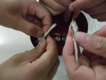 ご飯を炊いて、味噌汁を作ります。だっしゃこの頭とって、はらわたとって…、まあ家ではなかなかしないでしょうか。これも経験、あれも経験。
