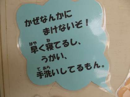 早寝早起き、手洗いうがい、好き嫌いせずに栄養バランス考えて、丈夫な体を作ります。12月なのでリースもありました。