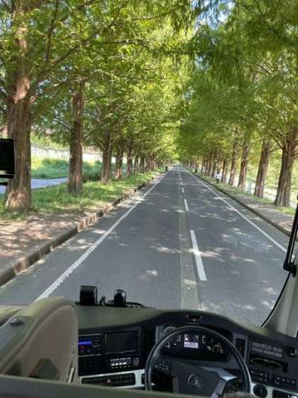 メタセコイア並木を通って、マキノ高原に着きました。ニジマスつかみに入っています。