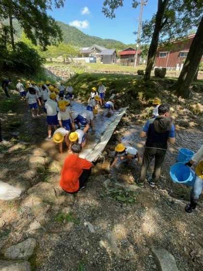 ニジマスを焼いていただき、お弁当と一緒に食べました。