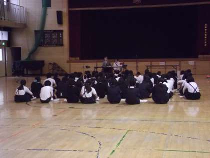 今日(12月3日)は、5年生のみなさんが、普段「車いす」で生活しておられる方からお話を聞かせて頂いて、その後実際に「車いす」に乗ったり、押したりする体験を行ないました。