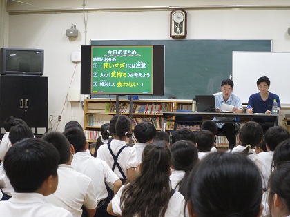 児童たちは、集中して話を聞き、積極的に手を挙げて発表していました。