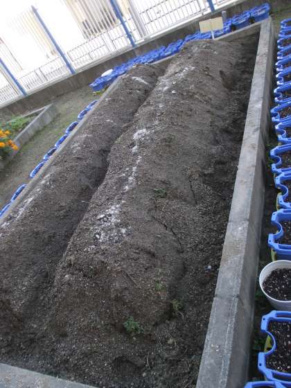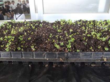 昨日、学習園の畝は「ヒヤシンス」でしたが、今日は裏返ってました。担当の先生に尋ねると「菜の花」が正解だそうです。教室のも「菜の花」とのことでした。